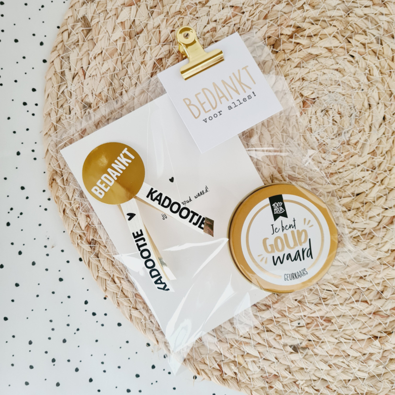 Van iets kleins iets groots maken. Daar zijn wij goed in. Het zit 'm in de detail. Onze cadeautjes worden met zorg samengesteld en met heel veel liefde ingepakt en dat zie je! De cadeautjes stralen waardering uit en dat is precies wat jullie toppers verdienen.