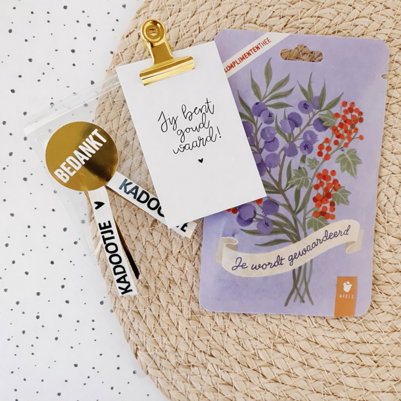 Geef een compliment dat van waarde is met een zakje heerlijke complimententhee en een verzorgende handcrème.