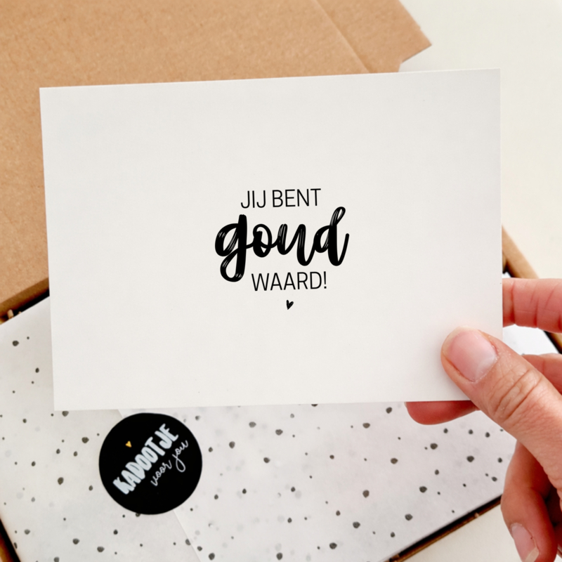 De leuke mok maakt het thee momentje helemaal compleet. We hebben een mok met de tekst 'Jij bent goud waard', een mok met een hartje of een mok met een super vrolijke smiley.