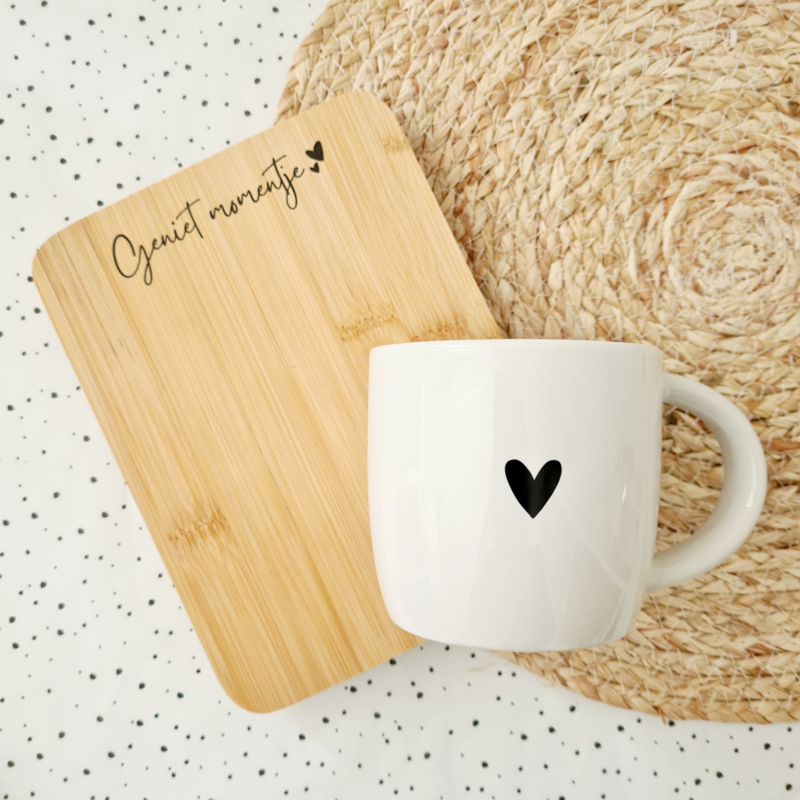Al het bovenstaande serveer je op het super leuke serveerplankje met de tekst 'Geniet momentje'.