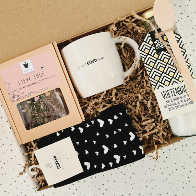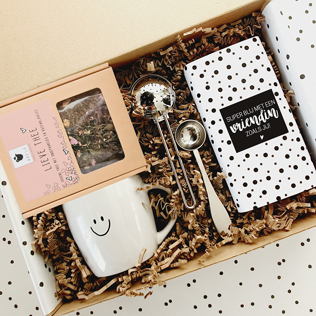 In onze collectie vind je cadeauboxen die speciaal zijn samengesteld om iemand te laten ontspannen en genieten. Denk aan combinaties van thee, koffie, chocolade, badzout, verzorgingsproducten en andere kleine verrassingen. Zo wordt een cadeautje voor vriendin niet alleen leuk om te krijgen, maar ook een moment van rust en verwennerij.
