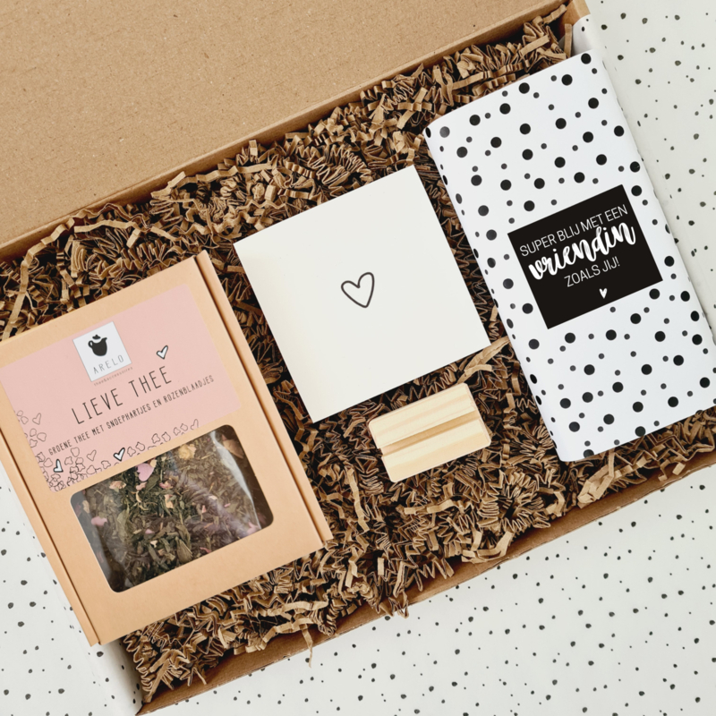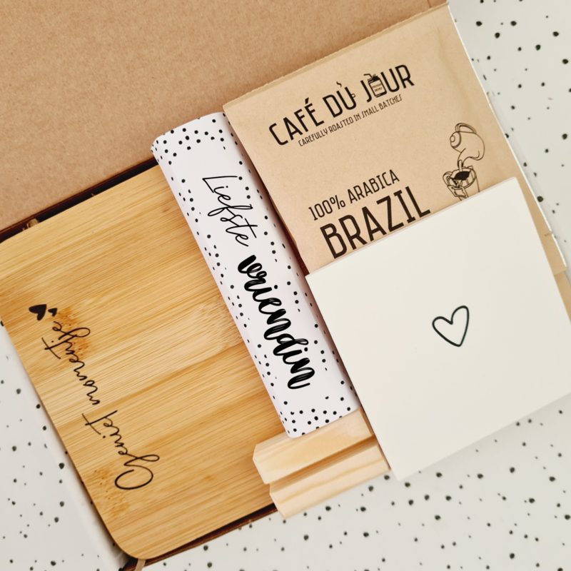 Een cadeau voor vriendin wordt nog specialer wanneer het persoonlijk aanvoelt. Daarom kun je bij onze cadeauboxen verschillende onderdelen aanpassen zodat het cadeau perfect past bij de ontvanger.
